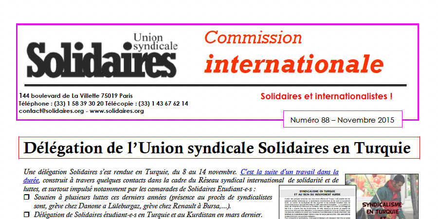 Ce numéro est consacré au compte-rendu de la délégation Solidaires en Turquie, qui s’est déroulée du 8 au 13 novembre.